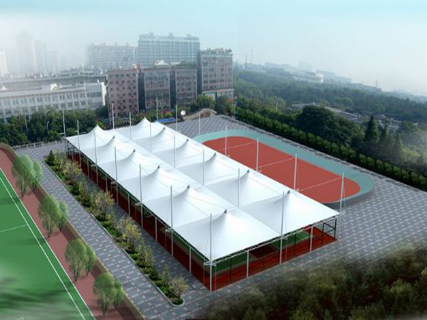 PTFE膜結(jié)構(gòu)羽毛球場優(yōu)勢:PTFE膜結(jié)構(gòu)羽毛球場擁有良好的力學性能、出色的耐候性、自潔性、透光性、造型美觀、施工便捷等優(yōu)勢。PTFE膜材具有較高的抗拉強度、撕裂強度和抗疲勞性能,能夠承受風雨、積雪等自然荷載,確保羽毛球場屋蓋在各種氣候條件下的安全性和穩(wěn)定性,可滿足不同規(guī)模和使用要求的羽毛球場建設。還具有良好的耐候性和耐化學腐蝕性,能抵御酸、堿、鹽等化學物質(zhì)的侵蝕,在紫外線長期照射下,不易褪色和老化,可延長羽毛球場的使用壽命。PTFE膜材表面光滑,不沾灰塵和污垢,雨水沖刷即可保持表面清潔,使羽毛球場外觀始終保持整潔美觀,減少了后期的清潔維護工作和成本。膜材具有良好的透光性,能夠讓陽光透過屋頂灑進場地內(nèi),營造出明亮而溫暖的環(huán)境,白天無需開燈也能保證充足的照明,不僅節(jié)省能源,還能為運動員和觀眾提供舒適的視覺體驗。PTFE膜結(jié)構(gòu)可以通過設計不同的形狀、曲線和色彩,創(chuàng)造出獨特而美觀的建筑造型,為羽毛球場增添現(xiàn)代感和藝術氛圍,使其成為城市景觀的一部分。膜材質(zhì)量輕,安裝過程更加便捷高效,大大縮短了施工周期。同時,膜結(jié)構(gòu)的裁剪和拼接可以在工廠預先完成,減少了現(xiàn)場施工的工作量和難度,提高了施工效率。