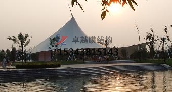 盡管上述四種基本形式的造型各不相同,但都遵循一個(gè)原則,即要通過剛性支承構(gòu)件或連接件在膜面內(nèi)形成一系列的高點(diǎn)和低點(diǎn);這正是互反曲面的基本特征,即互反曲面的邊界不會(huì)位于同一平面內(nèi)。把握了這一原則,在實(shí)際設(shè)計(jì)中就可以根據(jù)支承構(gòu)件的形式(桅桿、拱或吊環(huán))及其對膜的支承方式(點(diǎn)支承或線支承),來選取適當(dāng)?shù)纳虡I(yè)廣場雨棚搭建造型形式。
