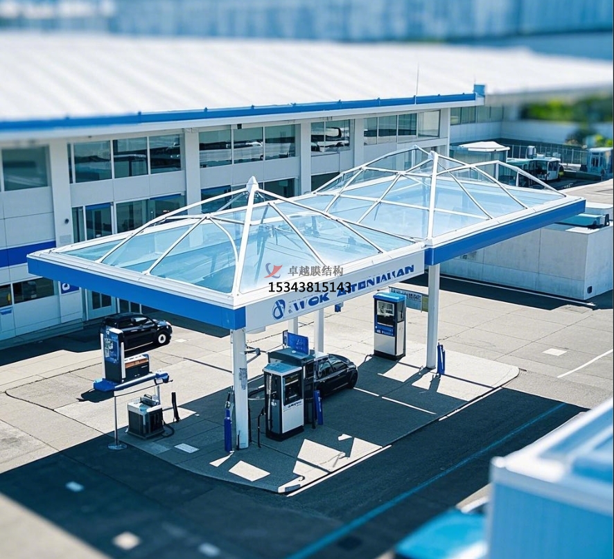 支       撐系統(tǒng)則根據(jù)加油站的規(guī)模和設(shè)計(jì)需求,選用鋼結(jié)構(gòu)或鋁合金結(jié)構(gòu)。鋼結(jié)構(gòu)支撐具有較高的強(qiáng)度和穩(wěn)定性,能夠適應(yīng)各種復(fù)雜的地形和氣候條件,通過合理的力學(xué)設(shè)計(jì),將膜材所承受的荷載均勻傳遞至基礎(chǔ)。鋁合金結(jié)構(gòu)則以其輕質(zhì)、耐腐蝕的特點(diǎn),在一些對重量有嚴(yán)格要求或環(huán)境較為惡劣的地區(qū)備受青睞,減輕了基礎(chǔ)的承載壓力,同時(shí)降低了維護(hù)成本。