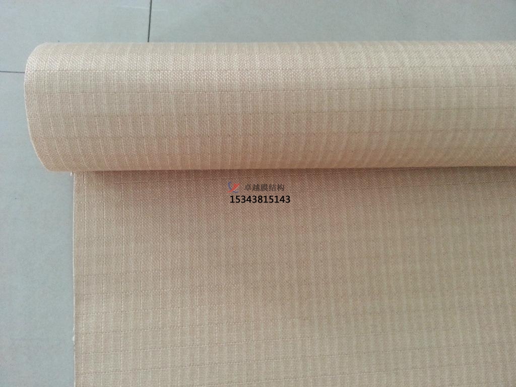 玻纖合成橡膠建筑膜材。合成橡膠(如丁腈橡膠,氯丁橡膠)韌性好,對(duì)陽光、臭氧、熱老化穩(wěn)定,具有突出的耐磨損性、耐化學(xué)性和阻燃性,可達(dá)到半透明狀態(tài),但由于容易發(fā)黃,故一般用于深色涂層。