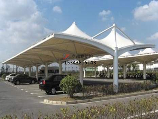 膜結(jié)構(gòu)車棚膜結(jié)構(gòu)所用的膜材料為具有、阻燃、耐久、自潔等特性的復(fù)合材料,一般由基布和涂層二部分組成?;贾饕捎镁壑w維或玻璃纖維絲編織而成,有平織和絞等多種編織方法,不同的膜結(jié)構(gòu)車蓬編織方法影響著膜材料的經(jīng)緯向力學(xué)性能指標(biāo),膜的抗拉強(qiáng)度和抗撕裂強(qiáng)度等;涂層材料主要有聚四氟乙烯和聚氯乙烯,在一定程度上提高了膜材料各項(xiàng)強(qiáng)度指標(biāo),為提高膜材料的耐久、自潔等特性,表面往往有一層氟涂層或硅涂層,膜材料的耐火、耐久及防水、自潔等性能,決定著膜材料的物理特性。