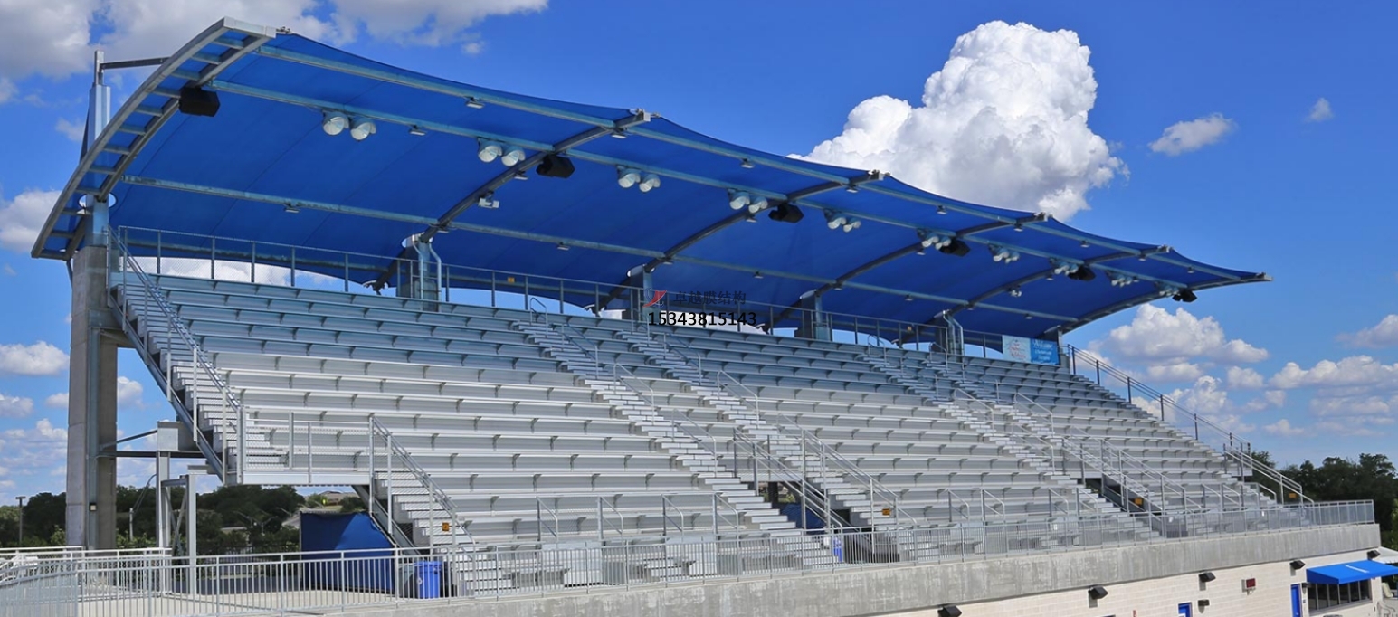 膜結(jié)構(gòu)體育看臺在設(shè)計(jì)上充分考慮了觀眾的需求和體驗(yàn)。寬敞的座椅區(qū)域、合理的排布方式,確保了每位學(xué)生都能擁有舒適的觀賽視角。同時,膜結(jié)構(gòu)材料具有良好的透光性和透氣性,即使在炎熱的夏季,也能有效減少陽光直射帶來的悶熱感,讓觀眾在享受比賽的同時,感受到自然的清風(fēng)與涼爽。