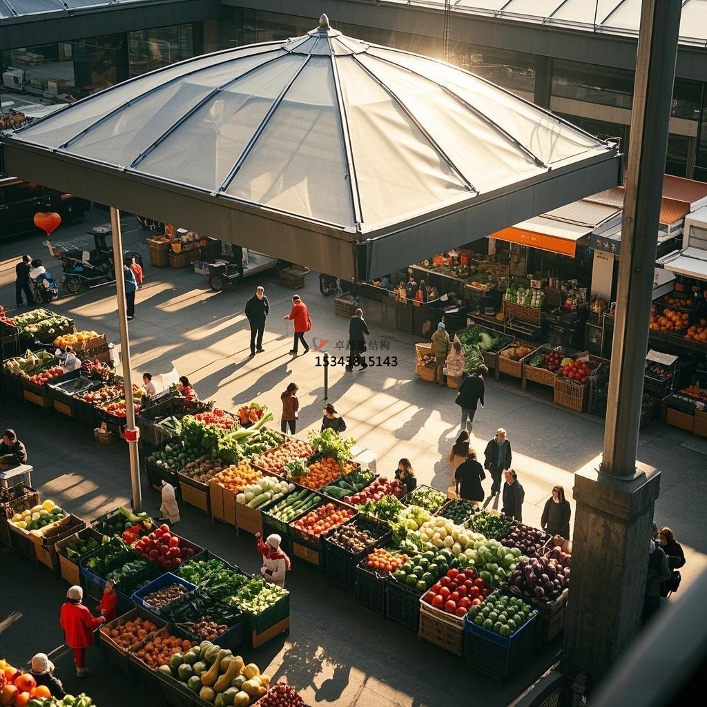 在城市的煙火氣中,農(nóng)貿(mào)市場占據(jù)著獨特而重要的位置。隨著時代的發(fā)展與進(jìn)步,傳統(tǒng)農(nóng)貿(mào)市場的面貌也在不斷革新,膜結(jié)構(gòu)在其中的應(yīng)用,為其帶來了全新的生機(jī)與活力。這種創(chuàng)新的建筑形式正以獨特的優(yōu)勢,重塑著農(nóng)貿(mào)市場的空間布局與氛圍,為市民的日常購物體驗增添了別樣的魅力。?