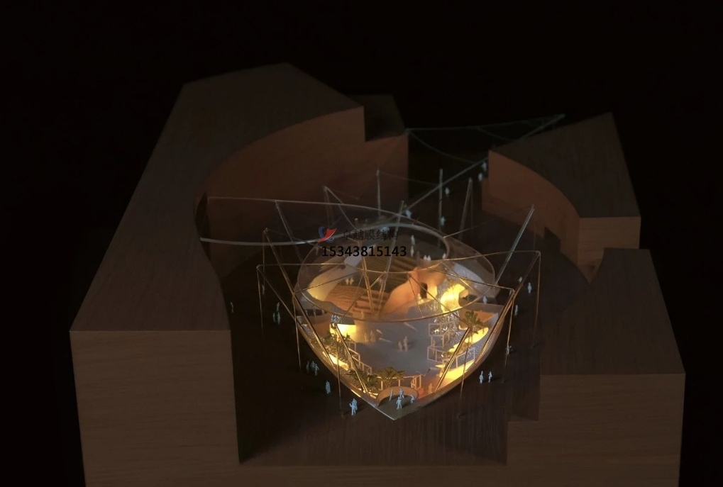 膜結(jié)構(gòu),顧名思義,是以膜材料為主要構(gòu)建元素的一種建筑結(jié)構(gòu)形式。在商場設(shè)計中,膜結(jié)構(gòu)通常被用于屋頂、中庭、廊道等區(qū)域,以其流線型的外觀和透明的質(zhì)感,為商場空間增添一抹輕盈與靈動。與傳統(tǒng)的鋼筋混凝土或鋼結(jié)構(gòu)相比,膜結(jié)構(gòu)以其輕質(zhì)、高強、易造型的特點,為商場設(shè)計提供了更多的可能性。