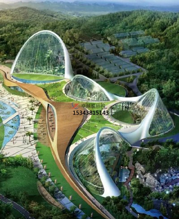 目前世界上有能力生產(chǎn)與加工ETFE膜材的廠家較少,僅德國(guó)、美國(guó)、日本等國(guó)少數(shù)幾個(gè)公司可生產(chǎn)ETFE膜材,而具有ETFE膜材加工制作、安裝能力的公司更少。ETFE膜材在國(guó)外已有20多年的應(yīng)用歷史。由于其極好的透光性能,特別適合建造需人工模擬自然環(huán)境的建筑如植物園以及運(yùn)動(dòng)場(chǎng)館等。如荷蘭Arnhiem動(dòng)物園、英國(guó)的Hampshire網(wǎng)球與健身俱樂(lè)部、英國(guó)的伊甸園、德國(guó)的“Moby Dick”游泳池、瑞士蘇黎世的Masoala雨林等建筑均采用ETFE膜。