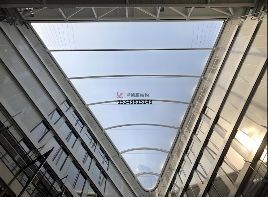 不僅如此,這種膜還具有自清潔功能,使灰塵不易附在其表面,清潔周期大約為5年。這種材料另一大優(yōu)點就是可在現(xiàn)場預(yù)制成薄膜氣泡,方便施工和維修。另外成本合理也是其極具競爭力的另一優(yōu)勢,覆蓋層加上結(jié)構(gòu)的費用只有玻璃的一半,而使用壽命卻長達25年。