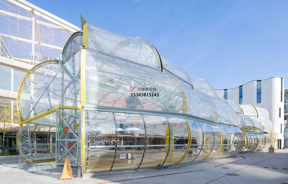 ETFE膜幾乎可以加工成任何尺寸和形狀,可預(yù)制成薄膜氣囊,在現(xiàn)場組裝、充氣,無濕作業(yè),施工和維修方便。