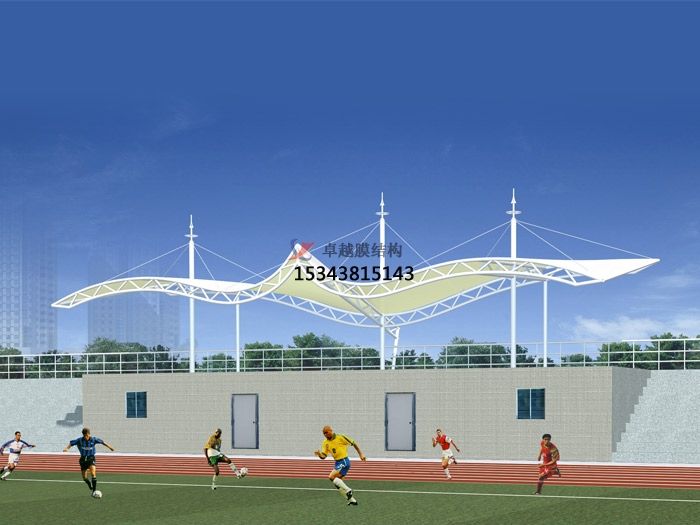 張拉膜看臺主要用于各類地方體育場主席臺雨棚,各類學(xué)校體育場看臺雨棚遮蓋,我公司是國內(nèi)較早從事大懸挑張拉膜結(jié)構(gòu)看臺設(shè)計施工的專業(yè)廠家,下面介紹一下我們在酒泉周邊縣市完工的一些張拉膜看臺設(shè)計施工案例,我公司先后在酒泉周邊承接了酒泉職業(yè)技術(shù)學(xué)院看臺雨棚、甘肅省酒泉衛(wèi)生學(xué)校張拉膜張拉膜看臺罩棚、酒泉市北關(guān)小學(xué)張拉膜看臺遮陽棚張拉膜看臺遮陽棚等設(shè)計施工項目,簡介如下:
