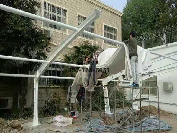 膜結構罩棚/車棚工程項目,10月10日我們卓越膜結構公司人員開始到現場施工。10月17日竣工。