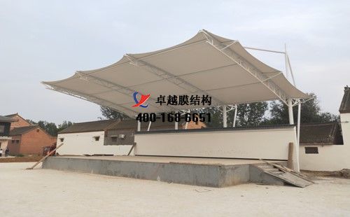焦作武陟東水寨村膜結(jié)構(gòu)看臺/舞臺項目,膜材展開面積為200平方,工程總造價******元,膜材單價***元(保密,具體請咨詢客服,想了解價格的可以參考《膜結(jié)構(gòu)價格》)