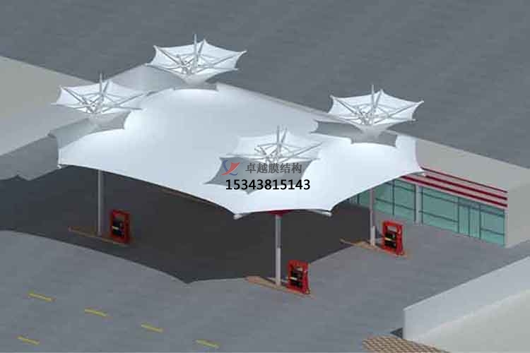 膜結構加油站在現(xiàn)場安裝一般工序有:基礎施工、鋼結構焊接安裝、膜布安裝等工序。
