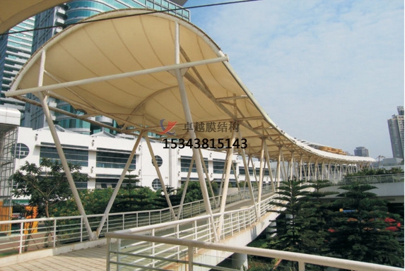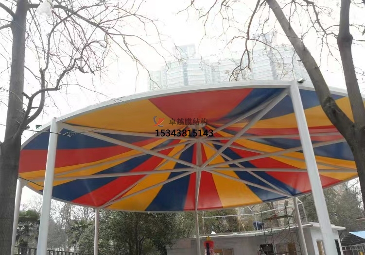 膜結(jié)構(gòu)遮陽棚結(jié)構(gòu)設(shè)計(jì):其結(jié)構(gòu)設(shè)計(jì)主要從找形分析、荷載計(jì)算、支撐體系、形態(tài)創(chuàng)新、膜材選擇等方面出發(fā)。找形分析,通過力密度法、動(dòng)力松弛法或非線性有限元法確定膜材空間形態(tài),確保合理受力分布與美學(xué)效果。荷載計(jì)算,重點(diǎn)考慮風(fēng)荷載、雪荷載及自重,采用有限元法進(jìn)行靜力與動(dòng)力分析,避免膜面受壓或局部應(yīng)力集中。支撐體系,選擇合適的支撐結(jié)構(gòu)形式,如鋼結(jié)構(gòu)、鋁合金結(jié)構(gòu)等。支撐結(jié)構(gòu)應(yīng)具有足夠的強(qiáng)度、剛度和穩(wěn)定性,能夠可靠地承受膜面?zhèn)鱽淼暮奢d。常見的支撐方式有立柱支撐、懸索支撐、框架支撐等。形態(tài)創(chuàng)新,結(jié)合曲線、弧線等元素,設(shè)計(jì)可調(diào)節(jié)遮陽棚,適應(yīng)不同光照與使用需求。半透明膜材與光影結(jié)合,營造柔和氛圍,兼具遮陽與景觀功能。膜材選擇,根據(jù)遮陽棚的使用要求和環(huán)境條件,選擇合適的膜材。膜材應(yīng)具有良好的耐久性、抗紫外線性能、自潔性能、防火性能等。常用的膜材有聚四氟乙烯(PTFE)膜、聚酯纖維基 PVC 膜、乙烯 - 四氟乙烯共聚物(ETFE)膜等。