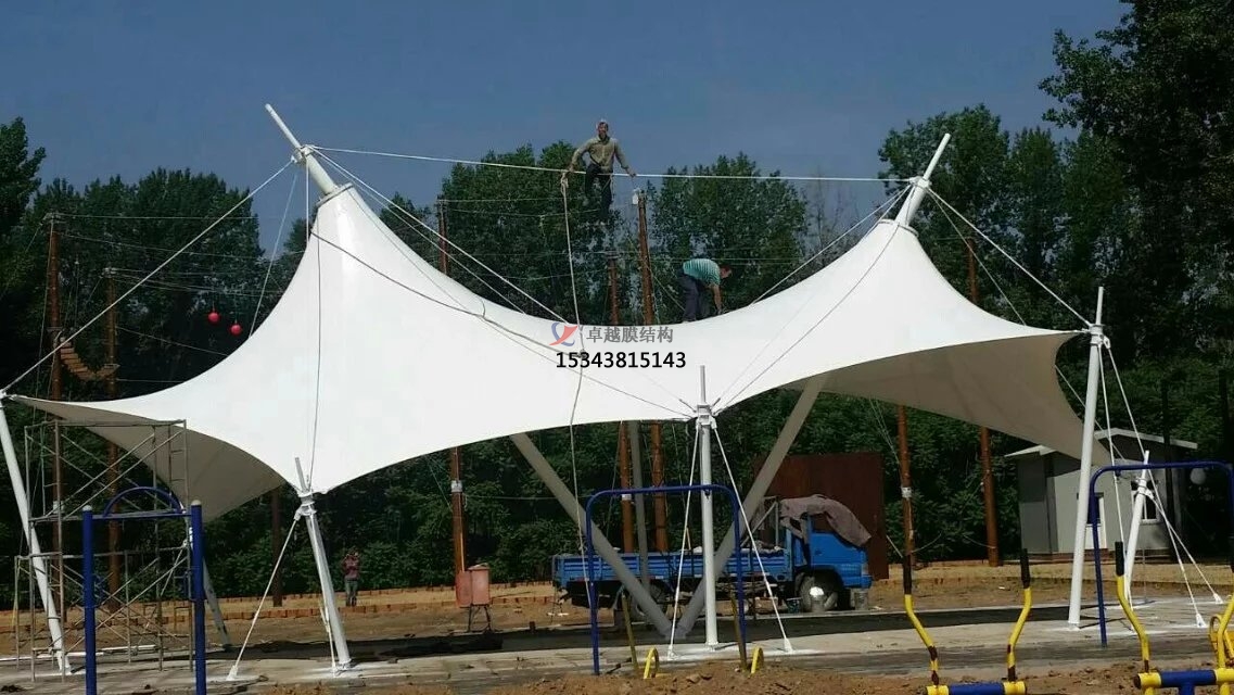 膜結(jié)構(gòu)遮陽棚需要進(jìn)行維護(hù)與優(yōu)化。日常維護(hù)需要定期清潔膜面污垢,檢查連接件松動(dòng)或膜材破損,及時(shí)修補(bǔ)。鋼結(jié)構(gòu)需防腐處理,延長(zhǎng)使用壽命。也需要智能化升級(jí),未來可集成傳感器監(jiān)測(cè)荷載變化,或結(jié)合光伏材料實(shí)現(xiàn)能源自給。膜結(jié)構(gòu)遮陽棚設(shè)計(jì)需兼顧材料性能、力學(xué)計(jì)算與美學(xué)創(chuàng)新,通過輕型支撐體系與可調(diào)節(jié)設(shè)計(jì)提升實(shí)用性。施工中嚴(yán)格把控工藝細(xì)節(jié),結(jié)合定期維護(hù)與智能化技術(shù),可打造安全、耐用且具有藝術(shù)性的遮陽設(shè)施。