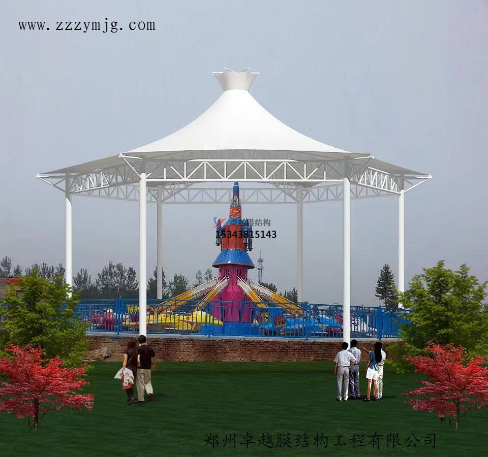 膜結(jié)構(gòu)遮陽棚造型設(shè)計(jì):其造型設(shè)計(jì)主要從整體風(fēng)格和形狀設(shè)計(jì)兩方面出發(fā)。其中整體風(fēng)格是指根據(jù)使用場(chǎng)所和客戶喜好確定遮陽棚的整體風(fēng)格,如簡(jiǎn)約現(xiàn)代、歐式古典、自然生態(tài)等??梢酝ㄟ^調(diào)整遮陽棚的形狀、線條、色彩來實(shí)現(xiàn)不同的風(fēng)格效果。形狀設(shè)計(jì),膜結(jié)構(gòu)遮陽棚的形狀豐富多樣,常見的有平頂式、坡頂式、拱形式、傘形式等。還可以根據(jù)場(chǎng)地的特殊要求和創(chuàng)意設(shè)計(jì)出獨(dú)特的形狀,如仿生形、自由曲線形等,以增加遮陽棚的美觀性和獨(dú)特性。
