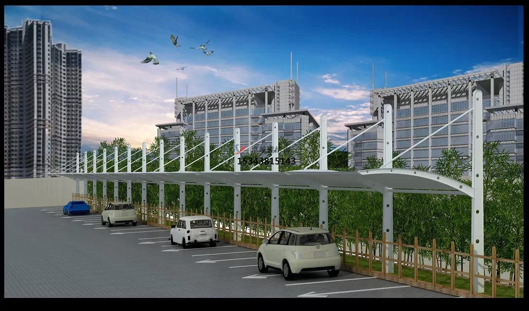 索膜結(jié)構(gòu)停車(chē)場(chǎng)的結(jié)構(gòu)特點(diǎn):其結(jié)構(gòu)特點(diǎn)主要有受力合理、輕質(zhì)高強(qiáng)、造型美觀等。它的受力通過(guò)拉索將膜材料張拉于結(jié)構(gòu)上,形成穩(wěn)定的空間雙曲張拉膜面、支承桅桿體系、支承索和邊緣索等構(gòu)成的結(jié)構(gòu)體系。膜內(nèi)預(yù)應(yīng)力的保持是結(jié)構(gòu)穩(wěn)定的關(guān)鍵,能使結(jié)構(gòu)以較小的厚度和重量承受較大的荷載,覆蓋空間大且自重輕(對(duì)比傳統(tǒng)建材),適用于各類(lèi)停車(chē)場(chǎng)頂棚結(jié)構(gòu)。索膜結(jié)構(gòu)停車(chē)場(chǎng)采用的膜材料一般質(zhì)量較輕,但強(qiáng)度很高,如高強(qiáng)度聚酯纖維涂層聚氯乙烯(PVC)膜等,在滿足結(jié)構(gòu)承載能力的同時(shí),減輕了整體結(jié)構(gòu)重量,對(duì)基礎(chǔ)要求較低。其膜材柔性特質(zhì)支持自由曲面設(shè)計(jì),可定制弧形、波浪形、七字型等個(gè)性化造型,還可根據(jù)不同的場(chǎng)地和需求進(jìn)行定制,打造出各種獨(dú)特的造型,與周?chē)h(huán)境和諧統(tǒng)一,提升城市景觀美感。