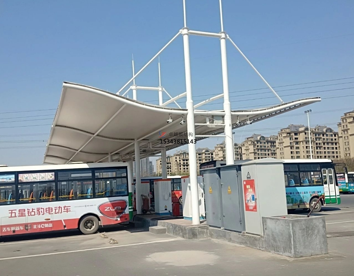 膜結(jié)構(gòu)車棚在此發(fā)揮了重要作用。一般采用骨架式,先用鋼材制成骨架,然后安裝膜材,通過加強構(gòu)建(鋼索、鋼柱)使其內(nèi)部產(chǎn)生一定的張力行程車棚形狀,能夠承受一定的風(fēng)載荷跟雪載荷。使用張拉式的也比較多。也有使用充氣式的,這種比較高端維護成本比較高使用比較少。