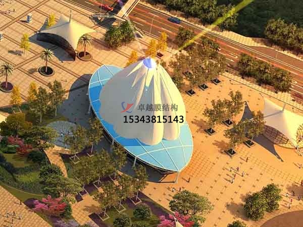 膜結(jié)構(gòu),是用高強度柔性薄膜材料經(jīng)受其它材料的拉壓作用,而形成的穩(wěn)定曲面,能承受一定外荷載的空間結(jié)構(gòu)形式。其造型自由、輕巧、柔美,充滿力量感,阻燃、制作簡易、安裝快捷、節(jié)能、易于、使用安全等優(yōu)點,因而使它在世界各地受到廣泛應(yīng)用。