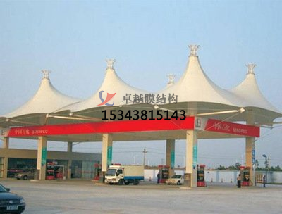 該加油站采用了先進(jìn)的張拉技術(shù),通過鋼索和支撐桿將膜結(jié)構(gòu)固定在地上,形成了寬敞明亮的加油空間。整個加油站的膜結(jié)構(gòu)采用了高強(qiáng)度聚酯纖維材料,具有高透明度、抗紫外線、防水、防火等特點,保證了加油體驗的安全性和舒適性。