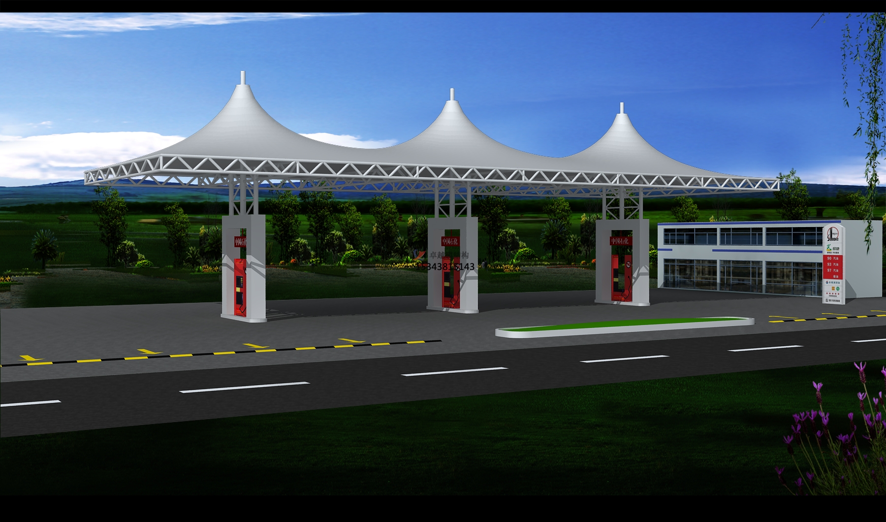 3、中國石化加油站(九都東路站)張拉膜雨棚/頂蓋