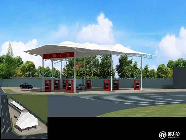 一、造型獨特,辨識度高,由于膜材重量輕,適合加油站這種大跨度的建筑,而且是采用張力結構所以在造型設計上具有很大的優(yōu)勢,可以實現(xiàn)非常具有藝術氣息的造型。