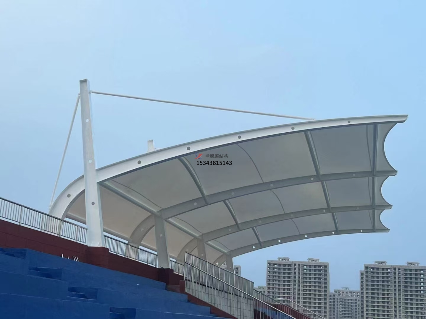 膜結(jié)構(gòu)看臺(tái)是一種全新的建筑結(jié)構(gòu)形式,它集建筑學(xué)、結(jié)構(gòu)力學(xué)、精細(xì)化工與材料科學(xué)、計(jì)算機(jī)技術(shù)等為一體,具有很高技術(shù)含量。其曲面可以隨著建筑師的設(shè)計(jì)需要任意變化,結(jié)合整體環(huán)境,建造出標(biāo)志性的形象工程。
