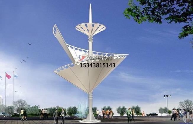 2、一個城市的中心區(qū)反映一個城市的地理風(fēng)貌和民族風(fēng)情,同時,也是一個城市文化發(fā)展程度的標(biāo)志。而景觀設(shè)計要求其具有廣泛的可讀性、雅俗共賞,既有超凡脫俗的藝術(shù)價值,又能使大眾喜聞樂見與大眾息息相通。張拉膜以其輕盈飄逸的造型、柔美并帶有力量的曲線和大跨度和大空間的鮮明個性和標(biāo)識性,應(yīng)用于城市小品設(shè)計中。