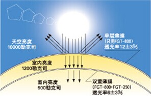 Skytop對太陽光的反射性率高、吸收率低。能抑制太陽熱能侵入建筑物內(nèi)。另外,由于材料半透明,所以白天不需要人工照