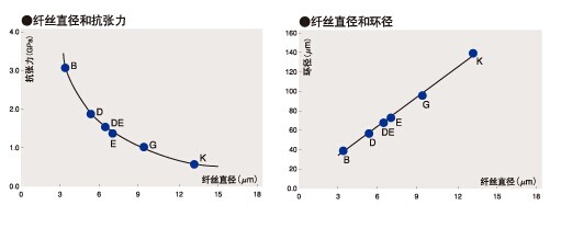 -般隨著纖維的直徑變小,單位面積的拉伸強度會增加。