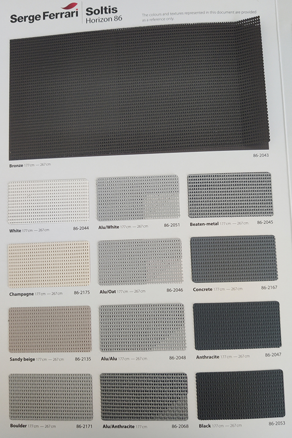 紗帝飾:紗帝飾面料為抵擋熱量和光線的真正盾牌,依靠其微型通風(fēng)結(jié)構(gòu),調(diào)節(jié)陽光的熱效應(yīng),有效地防眩目。紗帝飾面料具有46種顏色,可為所有建筑,無論是 公眾場合還是私人住宅提供配套的眾多色彩和多種用途。法拉利預(yù)應(yīng)力專利制造技術(shù)給紗帝飾織物帶來尺寸恒定,不會(huì)變形,無需加固自然抗撕拉,耐久和抗塵,占 地面積小等獨(dú)有特性,更顯出紗帝飾面料對(duì)建筑物技術(shù)性遮陽無可匹敵的優(yōu)勢(shì)。