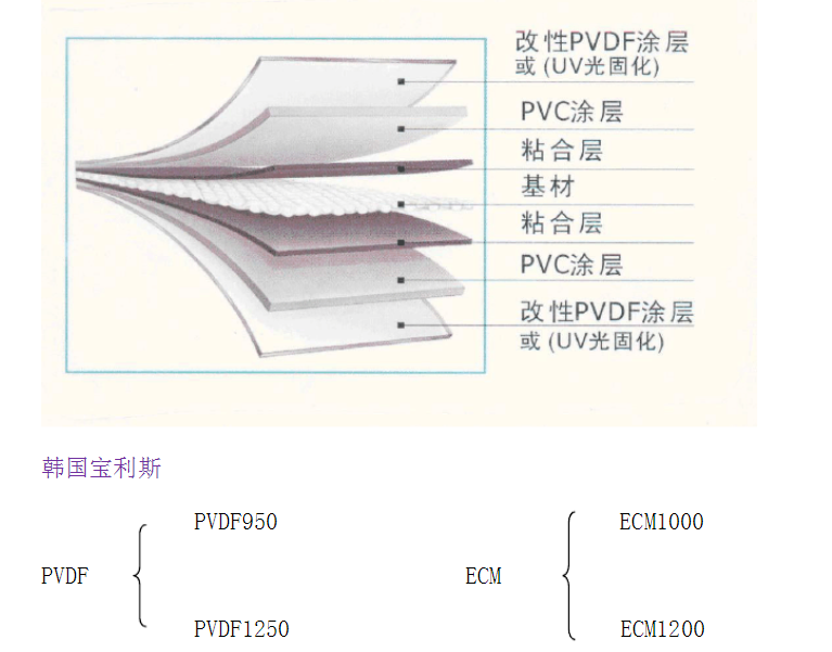 C類(lèi)是三類(lèi)中更次的,以聚酯(滌綸)織物為基材涂PVC而成。按涂層材料分,有聚四氟乙烯( PTFE)、聚偏氟Z烯( PVDF)、聚氟乙烯( PVF)、聚氯乙烯(PVC)、聚氨酯(PU)、橡膠等,它的壽命因不同的表面涂層而異,一般可達(dá)12- 50年。 [聚乙烯(PE) :塑料主要成分]