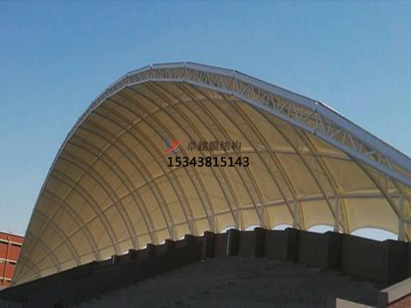 如遮陽篷的剪裁設(shè)計(jì)清楚地表現(xiàn)出漏斗狀傘頂?shù)脑煨?,其圖案還具有典型的穆斯林建筑風(fēng)格,有很強(qiáng)的裝飾效果。位于吉隆坡的馬來西亞更好的體育中心游泳館膜頂剪裁設(shè)計(jì)更具裝飾性。拼縫整體上是流暢的曲線,其間點(diǎn)綴著幾個(gè)巨大的花形圖案,而花心處恰恰是膜面的支點(diǎn)?;ǘ鋱D案的拼縫設(shè)i一十既明確表達(dá)了其受力關(guān)系,也有助動(dòng)了解膜面的整體形態(tài)。頂棚的整體效果猶如流動(dòng)的水面上浮著幾朵花瓣,跳動(dòng)的圖案給室內(nèi)帶來歡快的氣氛。