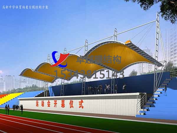 張拉膜看臺主要用于各類地方體育場主席臺雨棚,各類學(xué)校體育場看臺雨棚遮蓋,我公司是國內(nèi)較早從事大懸挑張拉膜結(jié)構(gòu)看臺設(shè)計(jì)施工的專業(yè)廠家,下面介紹一下我們在泰州市周邊縣市完工的一些張拉膜看臺設(shè)計(jì)施工案例,我公司先后在泰州周邊承接了泰州職業(yè)技術(shù)學(xué)院張拉膜看臺雨棚、江蘇農(nóng)牧科技職業(yè)學(xué)院張拉膜看臺罩棚、常州大學(xué)懷德學(xué)院張拉膜看臺遮陽棚等設(shè)計(jì)施工項(xiàng)目,簡介如下: