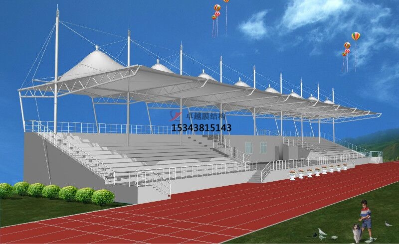 張拉膜看臺(tái)主要用于各類地方體育場主席臺(tái)雨棚,各類學(xué)校體育場看臺(tái)雨棚遮蓋,我公司是國內(nèi)較早從事大懸挑張拉膜結(jié)構(gòu)看臺(tái)設(shè)計(jì)施工的專業(yè)廠家,下面介紹一下我們在北京市周邊縣市完工的一些張拉膜看臺(tái)設(shè)計(jì)施工案例,我公司先后在北京周邊承接了北京市第八中學(xué)張拉膜看臺(tái)雨棚、北京市第四中學(xué)張拉膜張拉膜看臺(tái)罩棚、北京中學(xué)張拉膜看臺(tái)遮陽棚等設(shè)計(jì)施工項(xiàng)目,簡介如下: