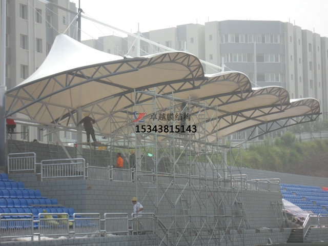 為了抵擋風(fēng)雪,膜面的外形應(yīng)使排水通暢使捷,避免在其上形成水兜或雪的堆積。在施加預(yù)應(yīng)力前的安裝成形階段,張拉膜結(jié)構(gòu)對(duì)這些荷載十分敏感。為了能將雨水排除,膜材和接縫須密封防水,膜邊緣也進(jìn)行特殊的細(xì)部設(shè)計(jì),以防止雨水進(jìn)入室內(nèi)。