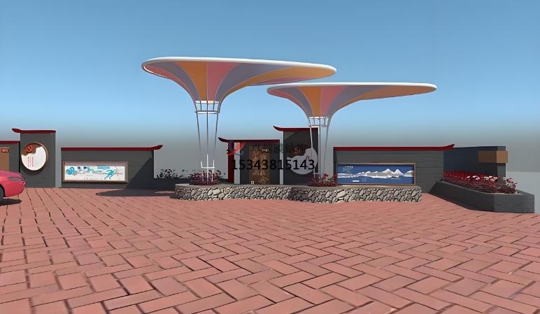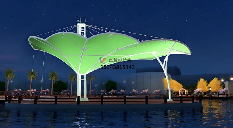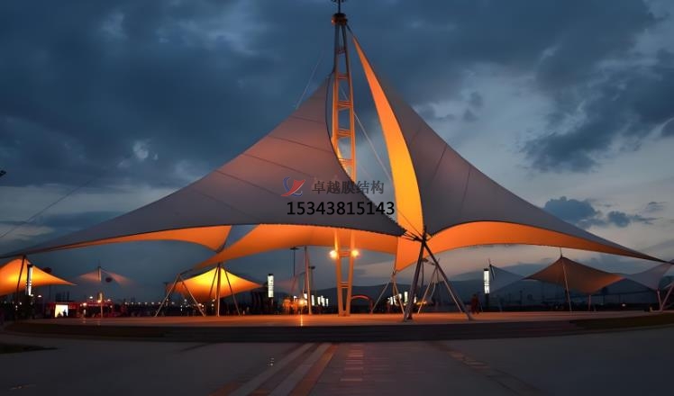 張拉膜景觀的應(yīng)用場(chǎng)景:商業(yè)空間,文化設(shè)施,運(yùn)動(dòng)場(chǎng)地,旅游景點(diǎn)。在商業(yè)空間中,如購(gòu)物中心、商業(yè)廣場(chǎng)的入口、中庭等,可吸引顧客目光,提升商業(yè)氛圍。在文化設(shè)施中博物館圖書館等文化場(chǎng)所,可營(yíng)造開放、溫馨的室內(nèi)環(huán)境,增添文化藝術(shù)氣息。在運(yùn)動(dòng)場(chǎng)地中足球場(chǎng)、籃球場(chǎng)等運(yùn)動(dòng)場(chǎng)館的屋頂或看臺(tái),實(shí)現(xiàn)大跨度覆蓋,為觀眾和運(yùn)動(dòng)員提供良好的空間環(huán)境。在旅游景點(diǎn)景區(qū)大門、游客服務(wù)中心、觀景臺(tái)等,可彰顯地域特色,為游客提供遮陽(yáng)避雨的空間。張拉膜景觀材料可在工廠預(yù)制,現(xiàn)場(chǎng)安裝快速高效,大大縮短施工周期。這種結(jié)構(gòu)通常采用預(yù)應(yīng)力拉索體系,利用邊鎖的拉力和膜材的形狀構(gòu)成造型,盡可能減少結(jié)構(gòu)體型對(duì)膜材視覺的影響常用彩色膜材以體現(xiàn)其千變?nèi)f化的浪漫情懷。其靈活的設(shè)計(jì)和組合方式,使其能夠適應(yīng)各種復(fù)雜的地形和環(huán)境。張拉膜景觀在設(shè)計(jì)中,會(huì)充分結(jié)合當(dāng)?shù)氐臍夂?、景觀和文化背景,使其不僅具有功能性,還能成為地域文化的象征,提升旅游地區(qū)的品質(zhì)形象。此外,張拉膜材料本身具有顯色性,在夜間彩燈的映射下能形成絢麗繽紛的景觀效果,為人們帶來(lái)時(shí)尚、輕松的休閑感受。