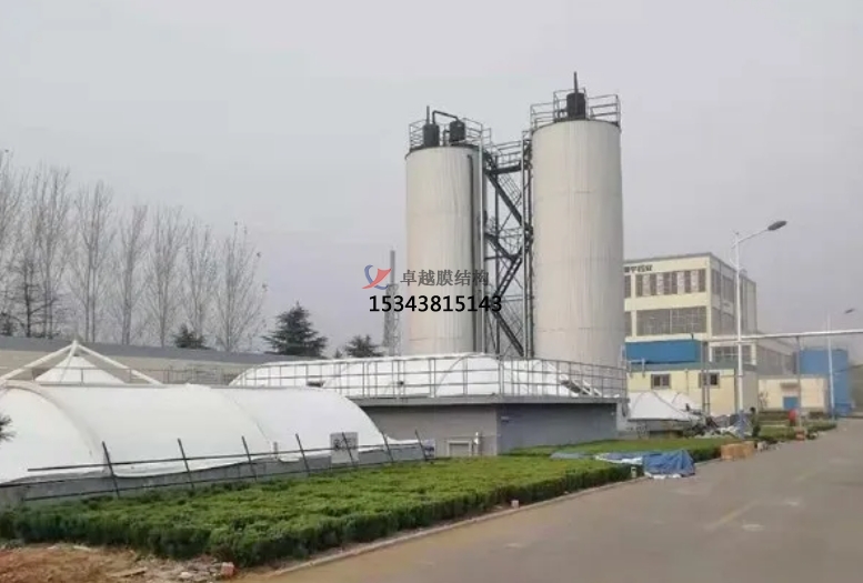污水池反吊膜采用的膜材抗腐蝕性能高,抗撕扯抗氧化能力好,不僅可以克服外界的不良環(huán)境(如風(fēng)載,雪載)等,而且自身采用優(yōu)質(zhì)PVDF涂層,經(jīng)過uv光固化處理,具有防霉抗菌作用。廢氣收集效率高;污水池加蓋反吊膜結(jié)構(gòu)之所以受歡迎,是因?yàn)槠鋸U氣收集率高,做到對環(huán)境的零污染。