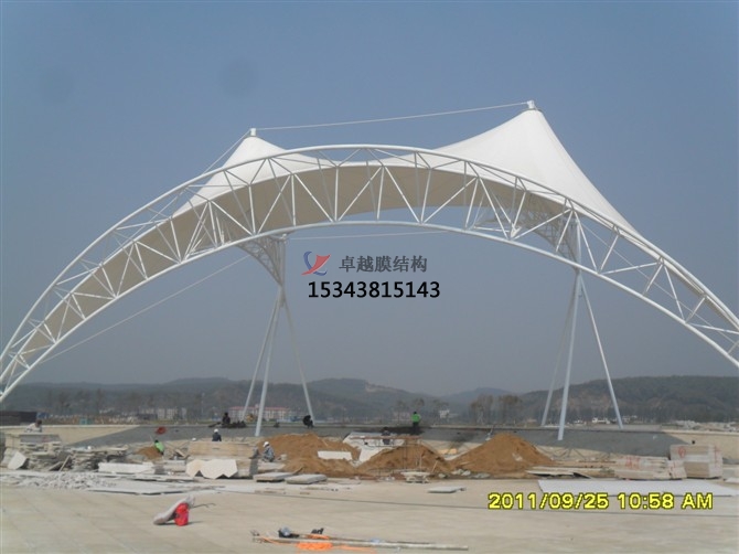 5、結(jié)構(gòu)穩(wěn)定,張拉膜結(jié)構(gòu)不是剛性的,其在風荷載或雪荷載的作用下會產(chǎn)生變形。膜結(jié)構(gòu)通過變形來適應外荷載,在此過程中荷載作用方向上的膜面曲率半徑會減小,直至能更有效抵抗該荷載。鄭州卓越膜結(jié)構(gòu)工程有限公司專業(yè)做膜結(jié)構(gòu)大門。
