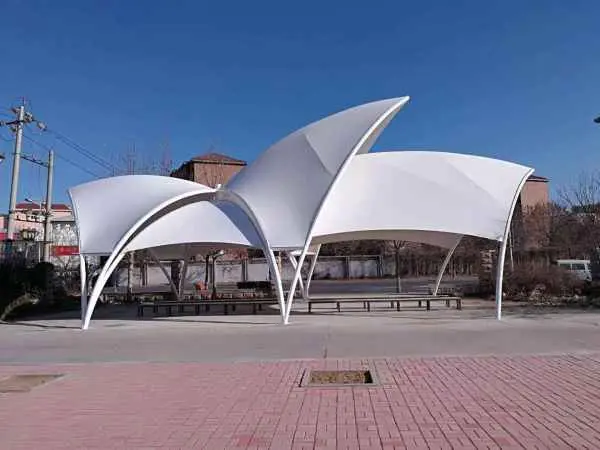 1.藝術性:膜結構產(chǎn)品以造型學、色彩學為依托,可結合自然條件及民族風情,根據(jù)建筑師的創(chuàng)意建造出傳統(tǒng)建筑難以實現(xiàn)的曲線及造型。