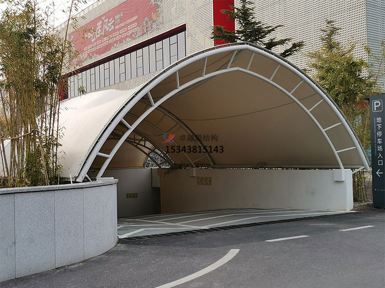 該小區(qū)的入口通道采用了雙層膜結(jié)構(gòu)的設(shè)計,外層膜采用高強(qiáng)度聚酯纖維材料,內(nèi)層膜采用聚乙烯材料,兩層膜之間填充了聚氨酯泡沫材料,具有優(yōu)秀的實(shí)用性和功能性,為居民的停車提供了便利。在膜材的選擇上,采用了環(huán)保材料,符合現(xiàn)代環(huán)保理念。此外,自動化控制系統(tǒng)的使用,也使得遮陽雨棚更好的利用。以保證入口通道的舒適度和安全性。整個膜結(jié)構(gòu)造型簡潔、大方,線條流暢,呈現(xiàn)出現(xiàn)代科技感。膜結(jié)構(gòu)的使用不僅提高了小區(qū)的安全性能,還增加了小區(qū)的景觀價值,成為小區(qū)的一大特色。