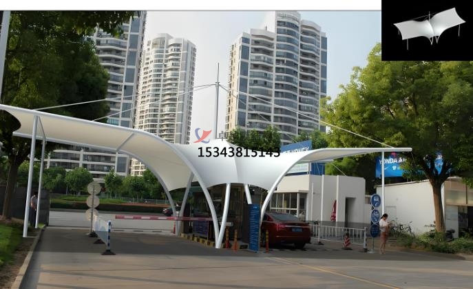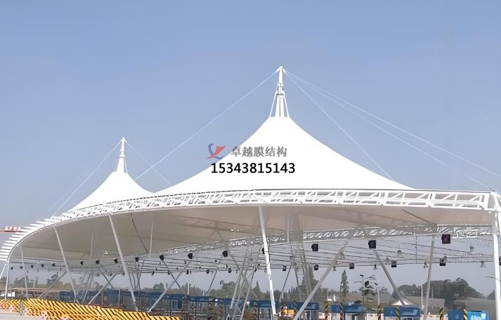 膜結(jié)構(gòu)出入口類型:地下車庫(kù)膜結(jié)構(gòu)出入口,大門(mén)膜結(jié)構(gòu)出入口,停車場(chǎng)出入口膜結(jié)構(gòu)收費(fèi)亭。地下車庫(kù)膜結(jié)構(gòu)出入口的功能是替代傳統(tǒng)雨棚,遮陽(yáng)擋雨,提升車庫(kù)實(shí)用性。優(yōu)點(diǎn)則是可拆裝重復(fù)使用(綠色環(huán)保)、自潔性強(qiáng)(雨水沖洗即可清潔)、抗老化(壽命 15 年以上),主要應(yīng)用場(chǎng)景為住宅、商場(chǎng)、交通樞紐的地下車庫(kù)。大門(mén)膜結(jié)構(gòu)出入口的功能是兼顧遮陽(yáng)防雨與景觀裝飾,提升建筑形象。優(yōu)點(diǎn)是造型新穎(如流線型、雕塑感設(shè)計(jì))、透光性好(減少照明能耗)、自重輕(抗震性強(qiáng))。應(yīng)用場(chǎng)景通常是小區(qū)、景區(qū)、學(xué)校、商業(yè)綜合體的主入口。停車場(chǎng)出入口膜結(jié)構(gòu)收費(fèi)亭的功能是作為收費(fèi)管理設(shè)施,兼具功能性與美觀性,優(yōu)點(diǎn)則是施工快捷、大跨度無(wú)柱設(shè)計(jì)、抗風(fēng)抗雪能力強(qiáng)。應(yīng)用場(chǎng)景通常是公路收費(fèi)站、景區(qū)停車場(chǎng)、物流園區(qū)。