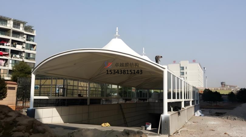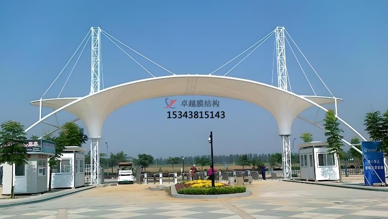 膜結(jié)構(gòu)出入口是一種以高強(qiáng)度膜材料與支撐結(jié)構(gòu)(鋼索、鋼架等)結(jié)合的建筑形式,具有輕盈、美觀、耐用等特點(diǎn),廣泛應(yīng)用于各種場(chǎng)所的建筑形式,主要用于提供遮陽(yáng)、遮雨的功能,同時(shí)具有較高的觀賞性和藝術(shù)感。