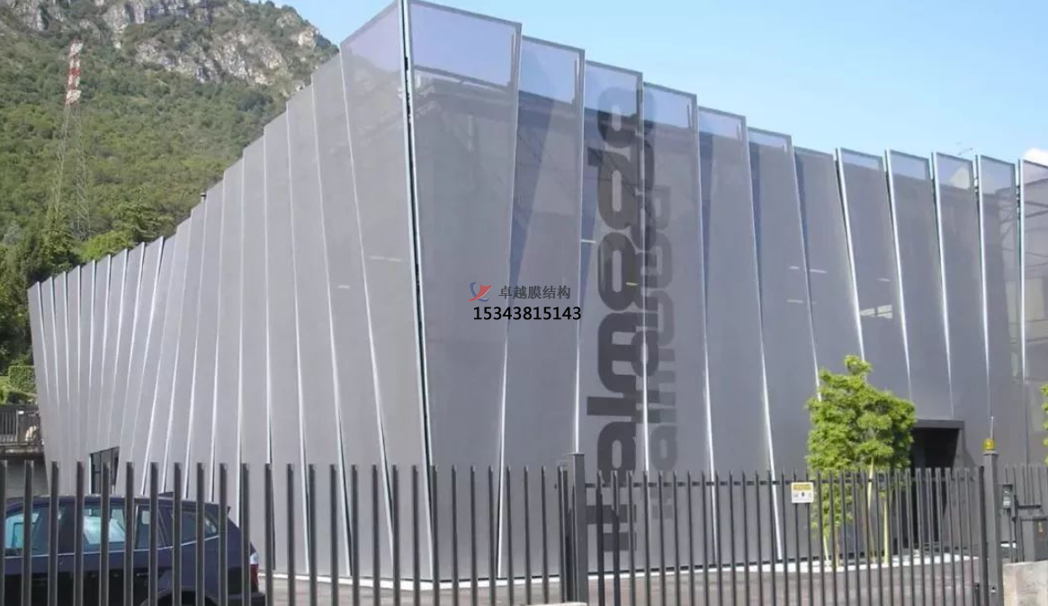織物膜材具有優(yōu)越的強(qiáng)度、尺寸穩(wěn)定性和牢固性,同時(shí)保證它長(zhǎng)期使用期限。材料保持張緊狀態(tài),又保證了其在安裝過程中及使用后尺寸恒定,避免出現(xiàn)松弛變形。