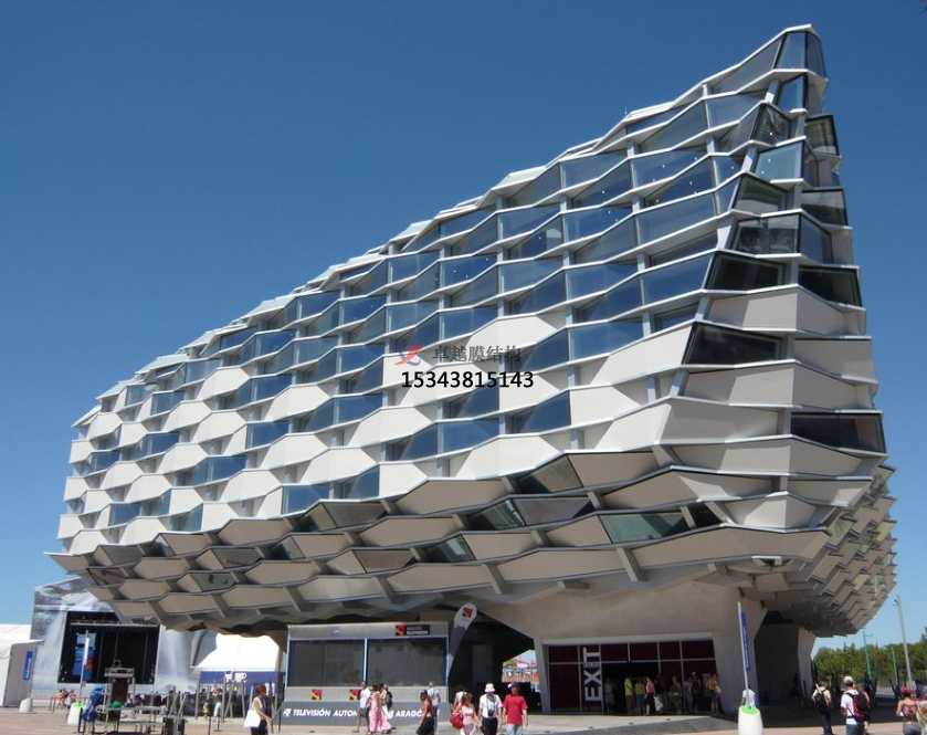 膜結(jié)構(gòu)幕墻是膜結(jié)構(gòu)在建筑外圍護(hù)結(jié)構(gòu)的應(yīng)用,以耐候性的柔性織物作為圍護(hù)材料,結(jié)合框架系統(tǒng),對(duì)既有建筑的外立面進(jìn)行翻新改造或新建筑外立面設(shè)計(jì)應(yīng)用的一種建筑外立面解決方案。膜結(jié)構(gòu)充滿張力且富于變化的曲面,自在靈敏的大空間、透明半透明膜材所構(gòu)成的明亮而又溫和的室內(nèi)環(huán)境,桅桿、拉索、精致的金屬節(jié)點(diǎn)等所表現(xiàn)的富有現(xiàn)代氣息的結(jié)構(gòu)技術(shù),給人們提供了有別于傳統(tǒng)幕墻結(jié)構(gòu)的全新視覺感受,它具有環(huán)保節(jié)能、可100%回收再利用、施工方便、重量輕、高強(qiáng)、高彈、高透光性、柔軟流暢、造型美觀、結(jié)構(gòu)固定簡(jiǎn)單等特點(diǎn)。