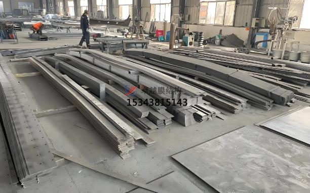 膜結(jié)構(gòu)生產(chǎn)的材料和加工:膜結(jié)構(gòu)的主要材料包括膜材和鋼結(jié)構(gòu)。根據(jù)設(shè)計(jì)要求,采購合適的膜材。常見的膜材有聚四氟乙烯(PTFE)膜材、聚氯乙烯(PVC)膜材等,采購時(shí)需注意膜材的質(zhì)量、性能和規(guī)格是否符合要求。我們的膜材通常采用進(jìn)口材料,具有高標(biāo)準(zhǔn)的阻燃、自潔和耐久性能。鋼結(jié)構(gòu)部分則根據(jù)設(shè)計(jì)圖紙進(jìn)行切割、焊接和打磨,確保其尺寸精確和表面光滑。我們會(huì)根據(jù)支撐結(jié)構(gòu)的設(shè)計(jì)要求,采購鋼材、鋁合金等材料,并進(jìn)行檢驗(yàn)和預(yù)處理,如除銹、防腐處理等。膜材的加工包括裁剪和焊接,使用先進(jìn)的裁剪及焊接生產(chǎn)線進(jìn)行,確保膜材的拼接精確和牢固。鋼結(jié)構(gòu)部分則通過CAD編輯到等離子切割,割出形狀后,用扁鐵包邊、打磨和刷油漆,確保其質(zhì)量和外觀。膜結(jié)構(gòu)的加工制作,膜結(jié)構(gòu)的展開形狀和尺寸,結(jié)合膜材的幅寬和特性,進(jìn)行裁剪設(shè)計(jì),確定每一塊膜片的形狀和尺寸,同時(shí)考慮到拼接縫的位置和方式,以減少材料浪費(fèi)和提高結(jié)構(gòu)性能。裁剪會(huì)使用到專業(yè)的裁剪設(shè)備,如數(shù)控裁剪機(jī),按照裁剪設(shè)計(jì)的圖紙對膜材進(jìn)行精確裁剪。裁剪過程中要注意控制裁剪精度,避免出現(xiàn)尺寸偏差和邊緣損傷。拼接縫合,將裁剪好的膜片通過熱合、縫合等方式進(jìn)行拼接,形成完整的膜結(jié)構(gòu)。拼接處要保證密封性能和強(qiáng)度,通常采用專用的膜材焊接設(shè)備或縫紉機(jī)進(jìn)行加工。支撐結(jié)構(gòu)的制作,支撐結(jié)構(gòu)也叫預(yù)埋件,預(yù)埋件的制作根據(jù)膜結(jié)構(gòu)的大小和設(shè)計(jì)要求進(jìn)行,厚度和長寬由CAD編輯到等離子切割而來?;A(chǔ)施工包括放線、切割地面、挖機(jī)破碎地面、混凝土放預(yù)埋板和地面修復(fù)等步驟。安裝過程中,將膜材與鋼結(jié)構(gòu)進(jìn)行精確連接,確保膜結(jié)構(gòu)的張拉和固定,使其在實(shí)際應(yīng)用中能夠承受各種環(huán)境條件,確保膜結(jié)構(gòu)的穩(wěn)固安裝。