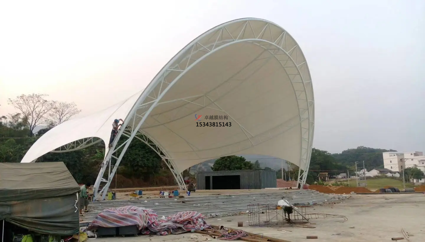 6.抵御天氣的影響:舞臺膜屋面的一個重要作用就是抵御各種天氣變化(如日曬、雨淋、風雪等)對其內(nèi)部空間的影響,保持建筑物內(nèi)部的舒適性。選擇膜面的形態(tài)和材料時要考慮到所有可能的天氣狀況,并盡可能利用建筑本身等被動方法來減少能量的消耗。