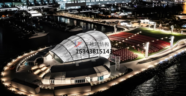 膜結(jié)構(gòu)舞臺的適用范圍非常廣泛,是明星演唱會、各大歌舞晚會及室外活動區(qū)域的遮陽遮雨第一選擇形式,最主要是其輕質(zhì)便捷而且又與光影能完全融合的特性而應(yīng)運而生。舞臺膜結(jié)構(gòu)的出現(xiàn),讓我們的生活更加豐富多彩。