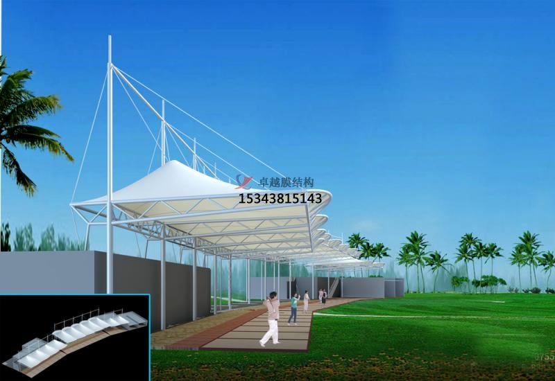 膜結構高爾夫發(fā)球臺遮陽棚效果圖