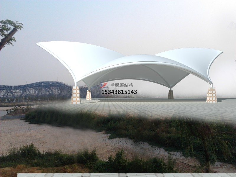 近年來(lái),隨著建筑空間觀念的日益深化以及科學(xué)手段的不斷提高,膜結(jié)構(gòu)已是現(xiàn)代建筑環(huán)境學(xué)發(fā)展的主流。它可以構(gòu)成單曲面,多曲面等不同建筑結(jié)構(gòu)形式,滿足了建筑師們對(duì)建筑與美學(xué)高度統(tǒng)一的要求。 由于膜材的光透性,白天陽(yáng)光可以透過(guò)膜材形成漫射光,使舞臺(tái)下如同自然,能很好地節(jié)約能源。夜間彩燈打射形成的絢爛景觀也讓市民體驗(yàn)到不一樣的感覺(jué)。膜材具有防水 性和遮陽(yáng)效果,而不受到日曬雨淋,因此膜結(jié)構(gòu)舞臺(tái)能創(chuàng)造出與自然環(huán)境相媲美的空間形式。