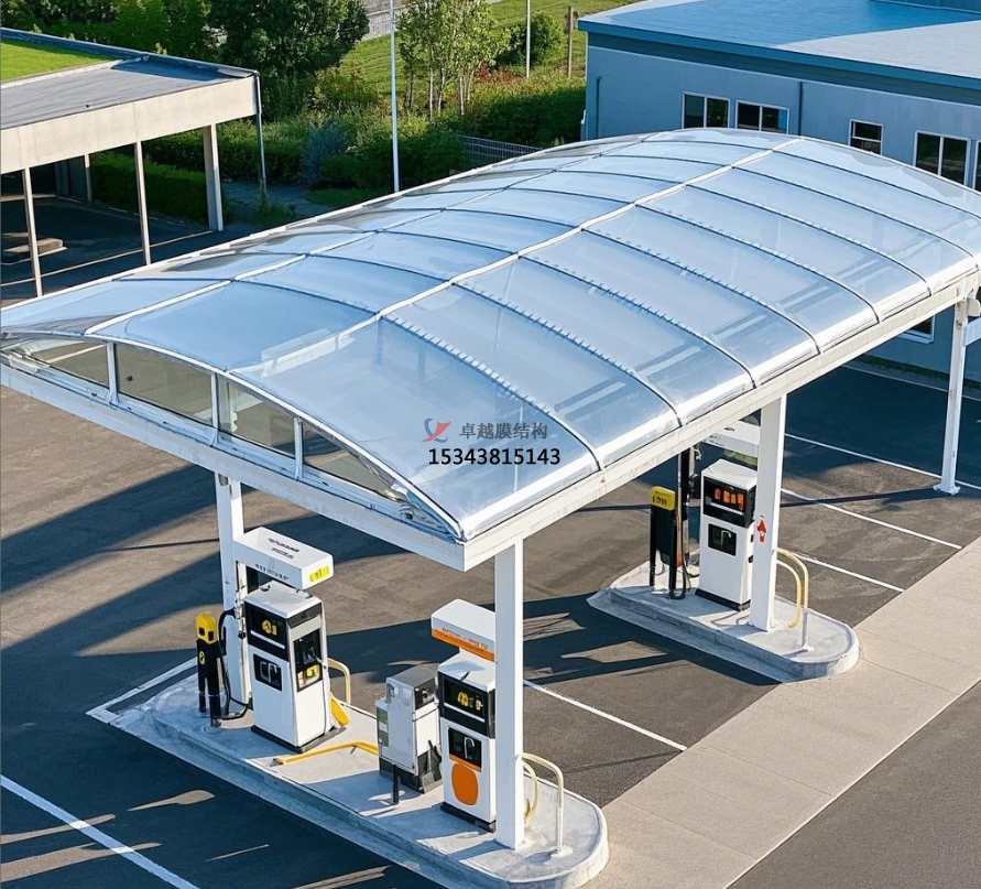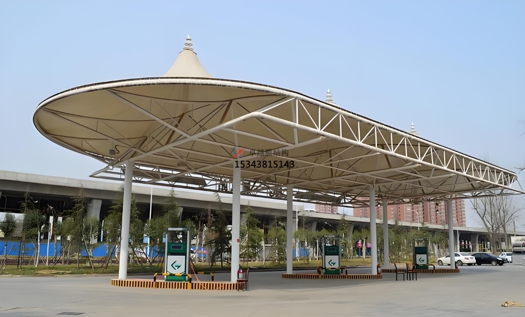 傳統(tǒng)加油站:在傳統(tǒng)加油站建設(shè)中,膜結(jié)構(gòu)頂棚已成為主流選擇。其卓越的耐候性和自潔性能,能始終保持加油站外觀整潔;良好的透光性優(yōu)化了室內(nèi)照明條件,提升加油作業(yè)效率;堅(jiān)固的結(jié)構(gòu)設(shè)計(jì)確保了設(shè)施的耐用性和安全性,為加油站的長(zhǎng)期穩(wěn)定運(yùn)營(yíng)提供有力保障。
