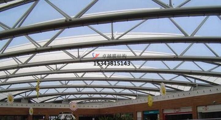 膜結(jié)構(gòu)車棚一改傳統(tǒng)建筑材料而使用膜材,其重量只是傳統(tǒng)建筑的三分之一,而且膜結(jié)構(gòu)車棚可以從根本上克服傳統(tǒng)大跨度建筑上所遇到的困難,可創(chuàng)造巨大的無遮擋的可視空間。膜結(jié)構(gòu)車棚特點是強度高、耐久性好、防火難燃、透光性好、自潔性好,跨度可以超過兩百米,不受紫外線影響,使用壽命長,一般15-30年。
